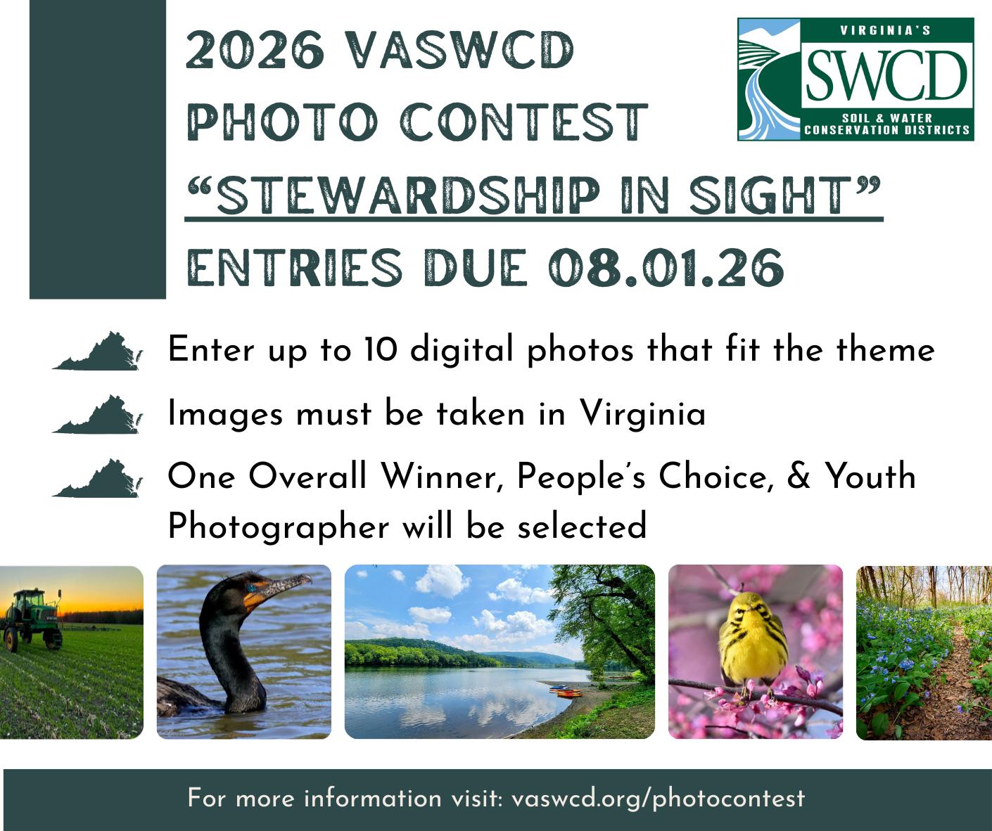 VASWCD’s 2026 Photo Contest is now OPEN. This year’s theme is “Stewardship in Sight. We encourage participants to capture these photos within the beautiful Northern Neck area. Deadline for submissions is August 1, 2026. Click here to submit your photo(s)! To learn more about the contest, please review the VASWCD Photo Contest rules.